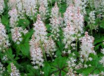 Jolie vivace vigoureuse, qui s’étend tel un tapis de fleur. Ses feuilles lobées sont vert pâle et se teintent de bronze en automne, son feuillage est semi-persistant. Sa floraison légère s'epanouit sous forme de petits épis, abondants, de couleur blanche en avril-mai.